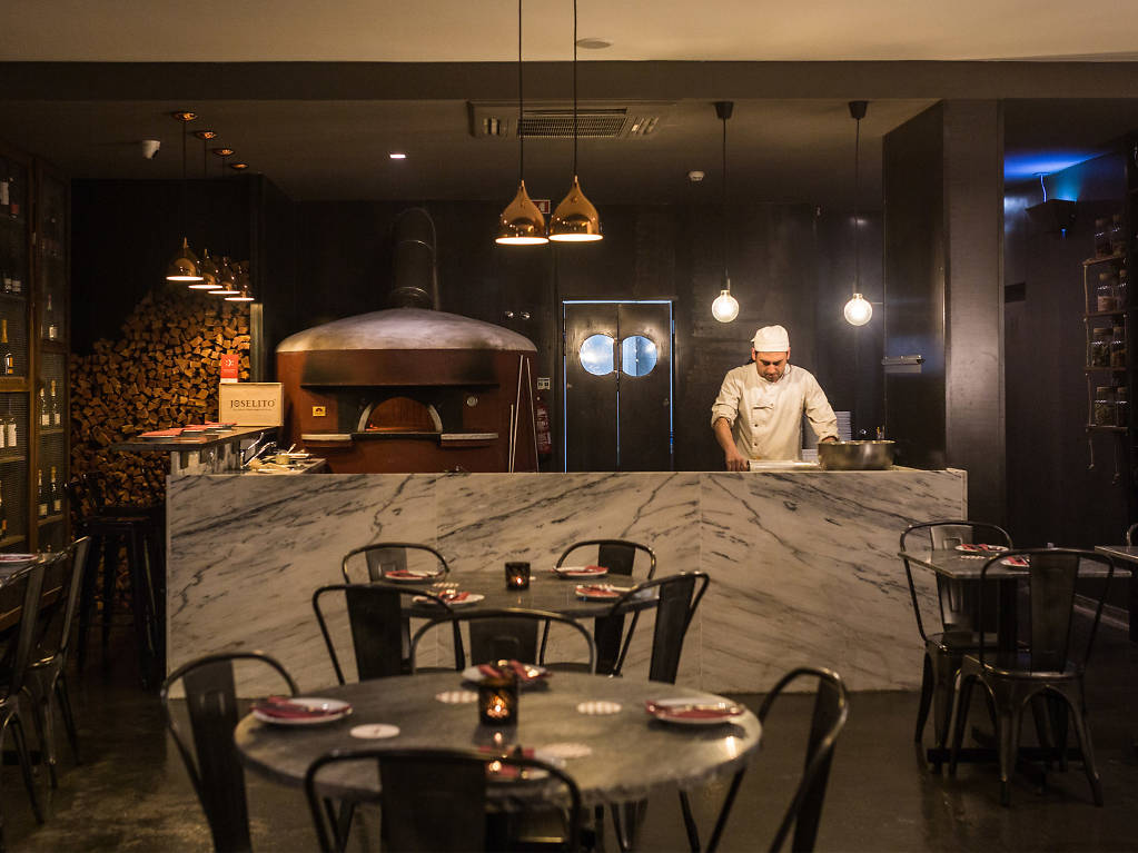 Uma das vantagens de ter cozinhas abertas é poder assistir ao espectáculo da preparação, neste caso da montagem das pizzas antes de irem parar ao grande forno da Forneria. Este italiano do Parque das Nações é famoso pela massa ao estilo romano que fica a fermentar durante 48 horas e aqui não faltam as clássicas parmigiana (9,50€) e prosciutto (10€), que não desiludem nunca, mas se quiser elevar a fasquia vire a página para as pizzas gourmet onde encontra uma pizza spek (13€) e a de presunto pata negra Joselito (19€). As opções estendem-se para os risotos e para as pastas com massa fresca.