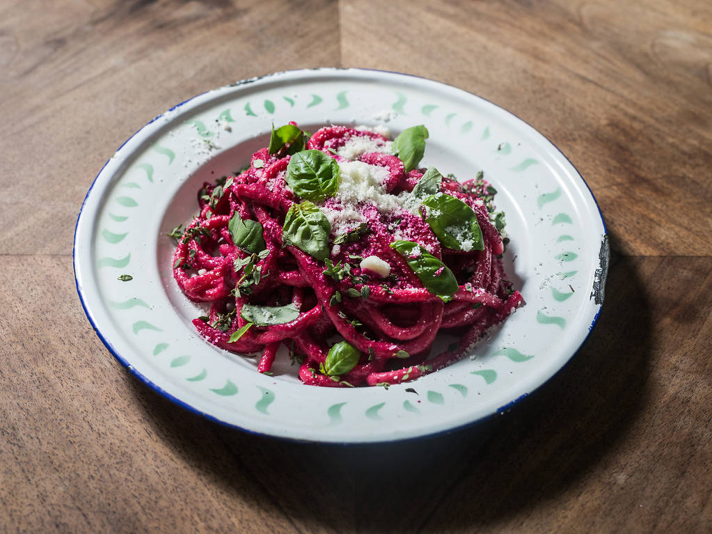Esta cucina de amici, como lhe chama Chiara Ferro, a cozinheira italiana de mão cheia à frente deste restaurante, é o equivalente à nossa tasca portuguesa – em vez de camisolas de clubes, há posters italianos, as cadeiras são como as antigas de escola, é apertadinho mas nem por isso menos confortável. A comida é italiana genuína, da focaccia e lulas fritas à moda de Roma para entrada aos pratos de pasta fresca, como o ragu de bolonhesa e a de pesto de beterraba (que convence até aqueles que não gostam do sabor a terra) aos cremosos risotos. A lasanha de pão siciliano, na versão vegetariana ou de carne com pancetta, e as almôndegas também são aqui servidas, qual comfort food italiana.
